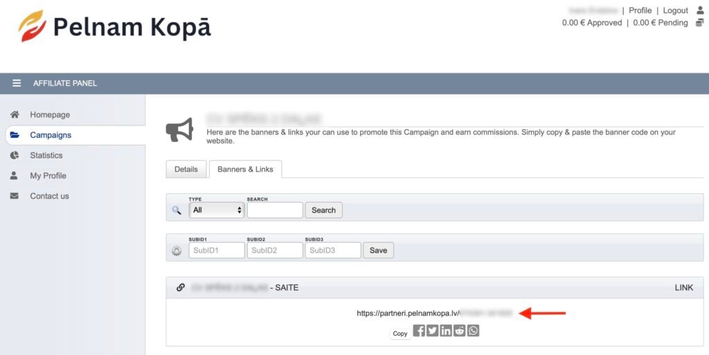 4.solis – Pēc apstiprināšanas izvēlētajai kampaņai, Mārketinga partneris saņem individuālu pirkuma izsekošanas saiti, kuru var izmantot savās mārketinga aktivitātēs