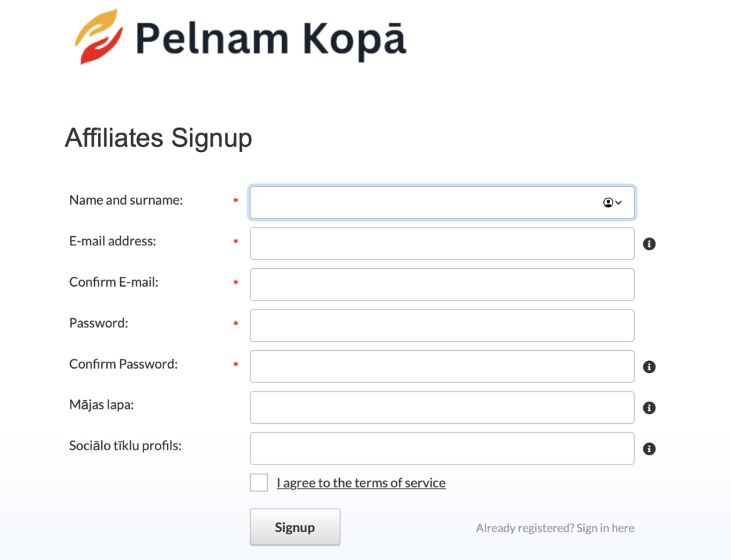 1.solis – Mārketinga partneris (affiliate) reģistrējas Pelnam Kopā platformā