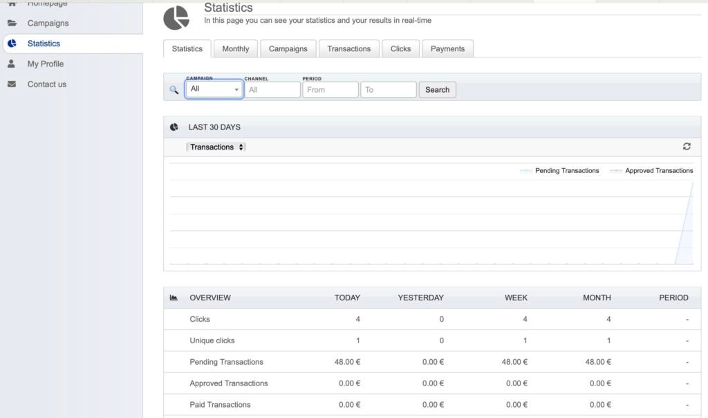 5.solis – Statistikas sadaļā Mārketinga partneris var sekot līdzi visām savām nopelnītajām komisijām